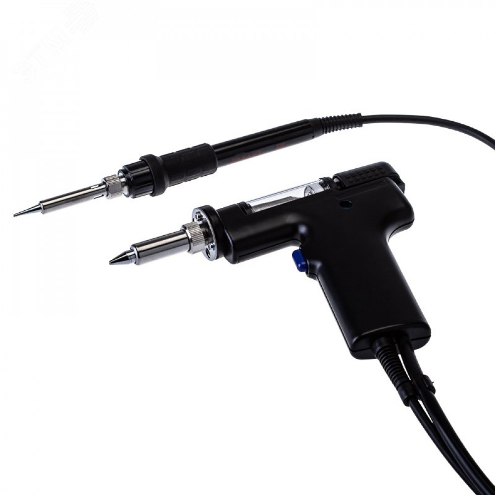 Многофункциональная паяльная станция 2 в 1 применяется для демонтажа или пайки различных видов электронных компонентов. Используется для ремонта портативной электроники, бытовой техники, а также для сборочных операций в небольшом производстве. Станция оснащена классическим паяльником и демонтажным паяльником. Оба устройства автономны и могут работать независимо друг от друга. Микрокомпьютер для цифрового отображения данных и контроля температуры с точностью до 1 градусовC, большая мощность, быстрый разогрев. Все эти преимущества делают бессвинцовую распайку или пайку безопасной для таких чувствительных компонентов как SOIC, PLCC, QFP, BGA и т. д. В комплектацию станции входят- основной блок, паяльник, демонтажный паяльник, держатель паяльника, губка для очистки жала паяльника (в ложементе).