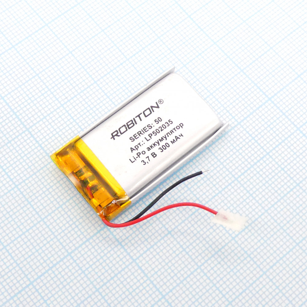 LP502035, Аккумулятор литий-полимерный (Li-Pol) 5*20*35мм, с защитой