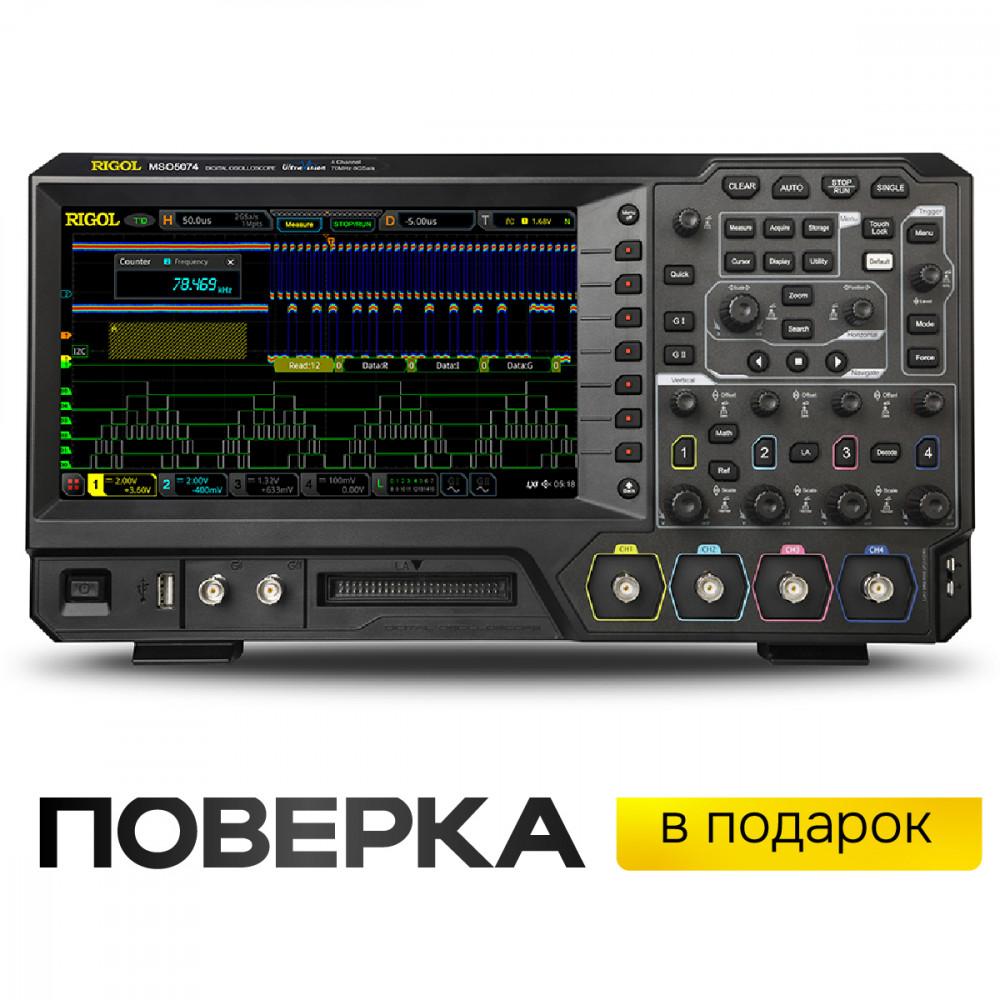 MSO5074 – недорогой производительный осциллограф формата 7-в-1 с полосой пропускания 70 МГц и 4 аналоговыми/16 цифровыми каналами (при использовании пробника PLA2216). Осциллограф настольного формата (Д367мм*В200мм*Ш130мм, вес 3,5 кг) выполнен в виде моноблока с современным эргономичным дизайном, 9” ёмкостным мультисенсорным цветным экраном и удобной ручкой для переноски.