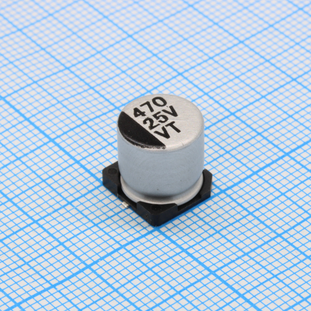 VT471M1EBKJ1010VBK, Конденсатор алюминиевый электролитический SMD 470мкФ 25В ±20% (10х10.5)мм 280мА 2000час 105°C лента на катушке