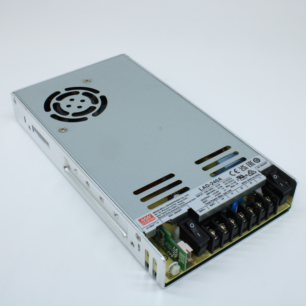 LAD-240A, AC-DC с функцией заряда АКБ, 240.12Вт, вход 90…132/180…264В AC, 47…63Гц /240…370В DC, вых1: 13.8В(10.8…14.5В)/16.4A, вых2: 13.8В/1A (заряд), изоляция 3000В AC, в кожухе 215х115х30мм, -20…+60°С, состояние по TTL