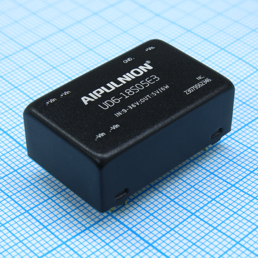 Доставка UD6-18S05E3 , DC/DC, 6Вт, вход 9…36В, выход 5В/1.2А, изоляция 1500В DC, КПД 78…80%, DIP24, 31.8x20.3x12.5мм, -40…85°C, металл