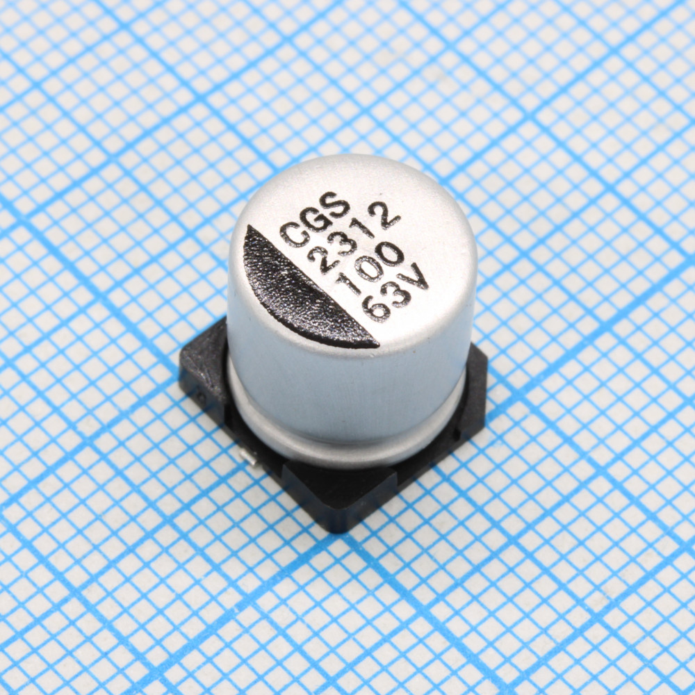 CGS063M101G10PKKKV00R, Конденсатор алюминиевый электролитический 100мкФ 63В ±20% (10 X 10мм) для поверхностного монтажа 0.5Ом 150мА 1500час 125°С лента на катушке