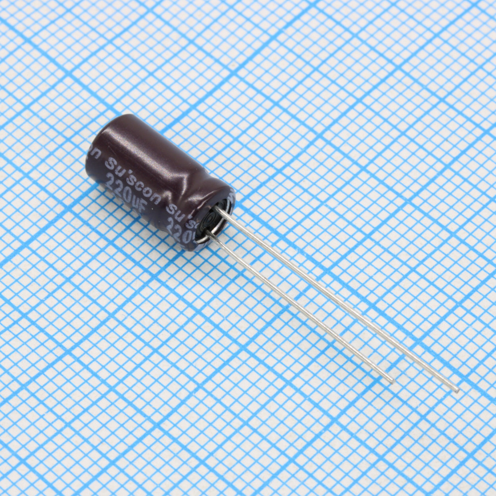 Конденсатор алюминиевый электролитический 220мкФ 16В ±20% (6.3х11мм) радиальный 2.5мм 0.1Ом 550мА 5000час 105°C россыпь