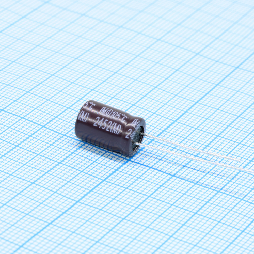 MG025M221F12PKKKS00R, Конденсатор алюминиевый электролитический 220мкФ 25В ±20% (8х12мм) радиальный 3.5мм 0.059Ом 810мА 6000час 105°C россыпь