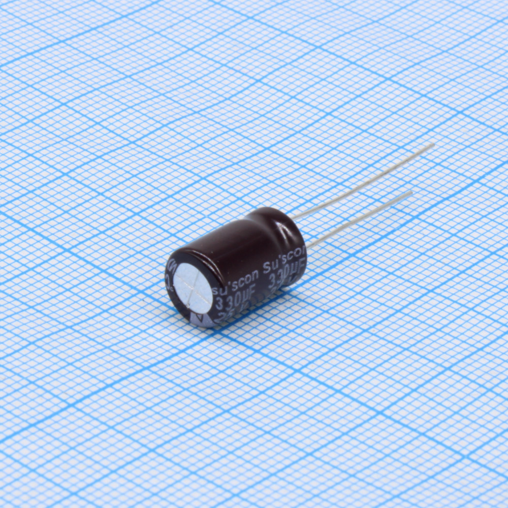 Конденсатор алюминиевый электролитический 330мкФ 25В ±20% (8х12мм) радиальный 3.5мм 0.059Ом 990мА 6000час 105°C россыпь