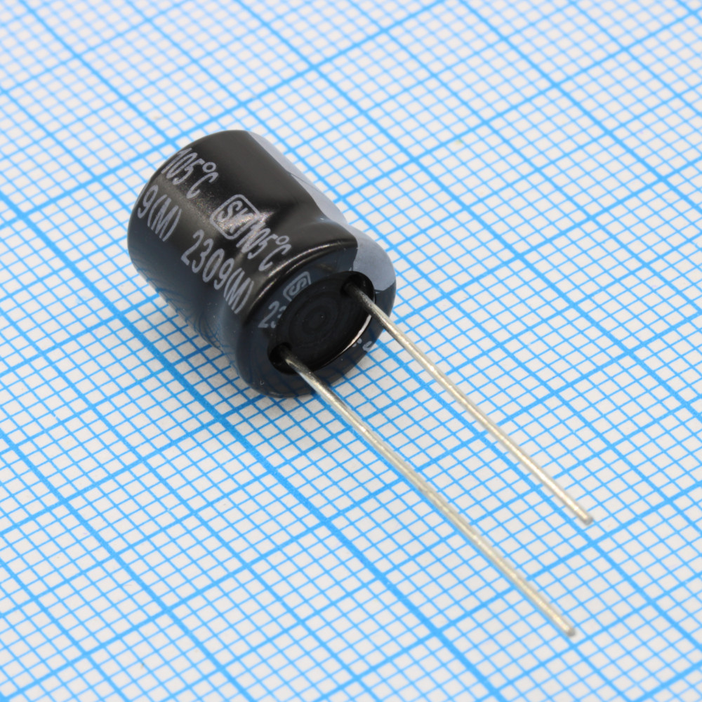 Конденсатор алюминиевый электролитический 1000мкФ 10В ±20% (10х13мм) радиальный 5мм 586мА 2000час 105°C россыпь