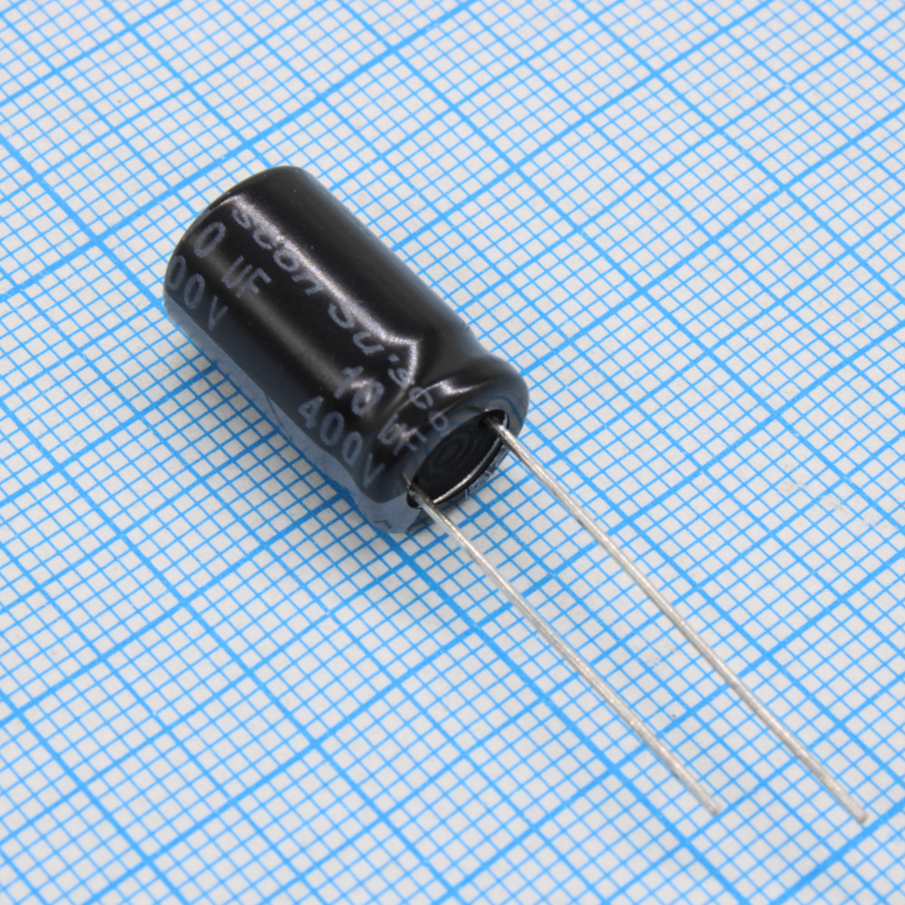 Конденсатор алюминиевый электролитический 10мкФ 400В ±20% (10х16мм) радиальный 5мм 100мА 2000час 105C