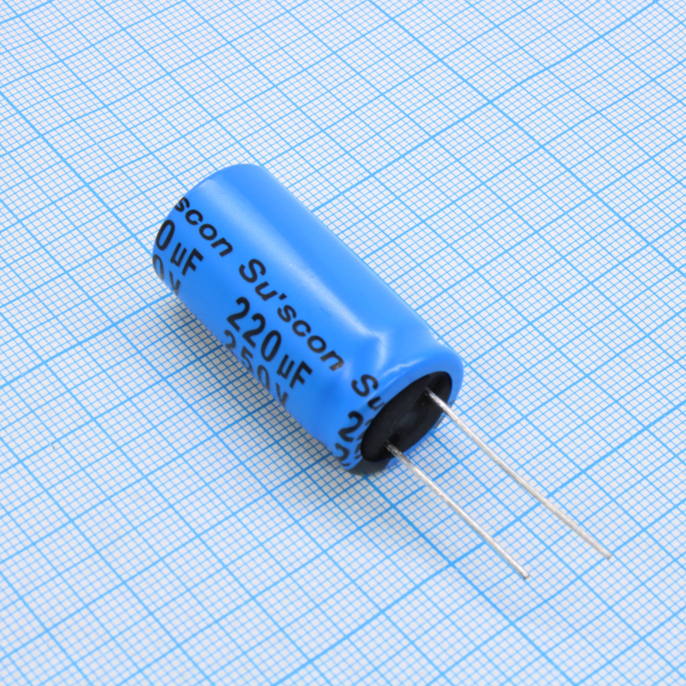 Конденсатор алюминиевый электролитический 220мкФ 250В ±20% (18х36мм) радиальный 7.5мм 1120мА 2000час 105°C россыпь