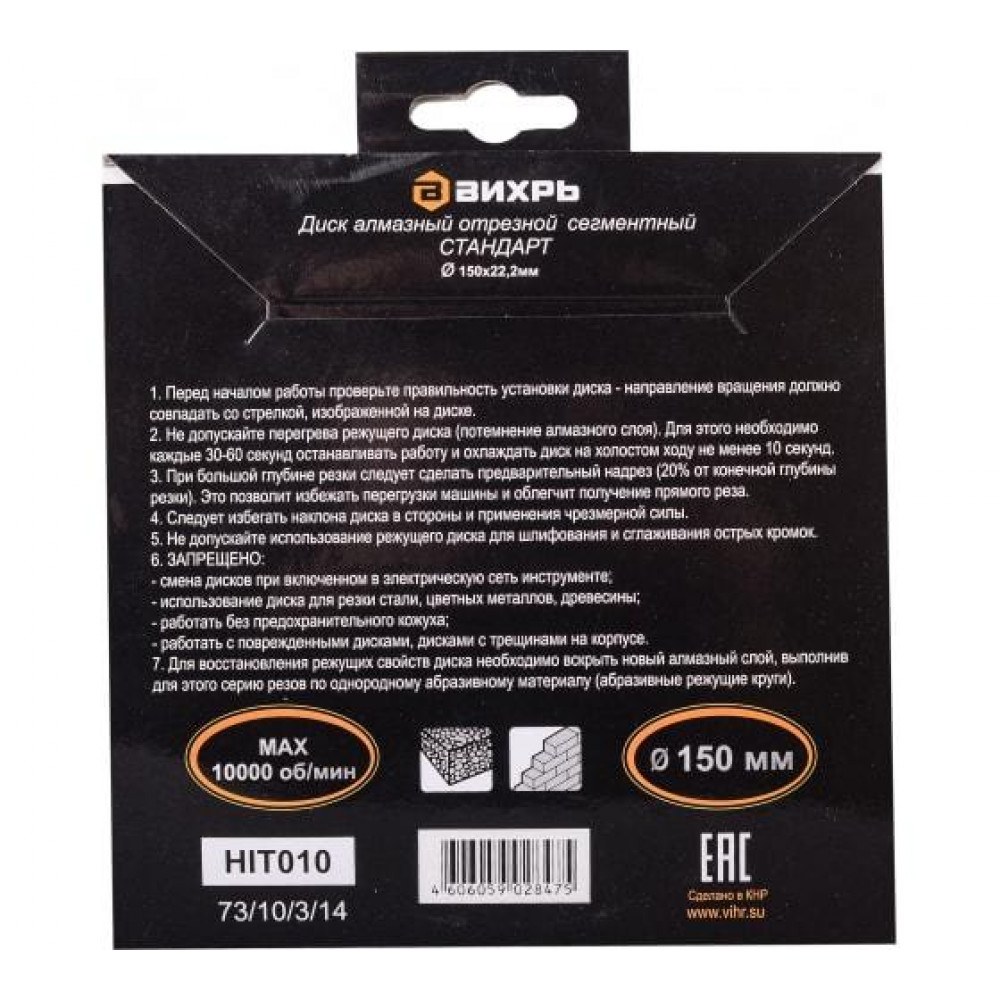 Описание Диск алмазный отрезной сегментный СТАНДАРТ 150х22.2мм сухая резка 73/10/3/14