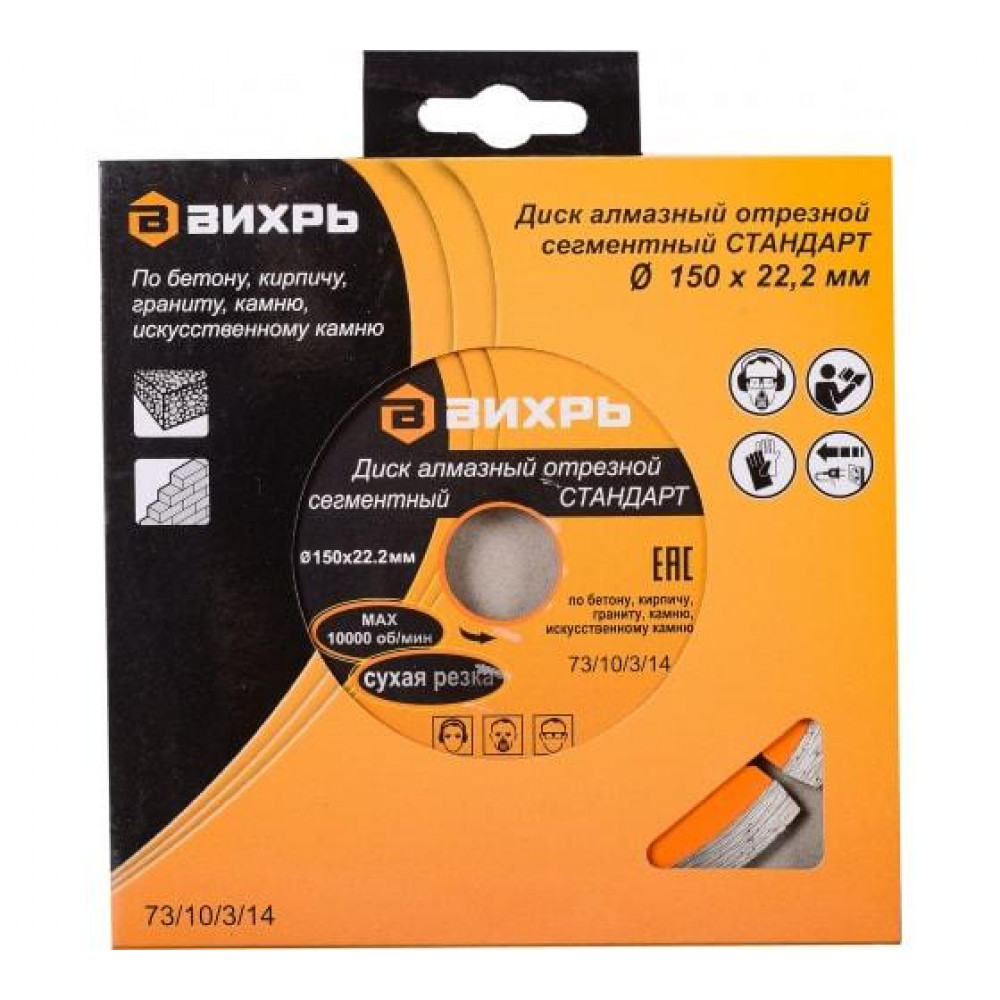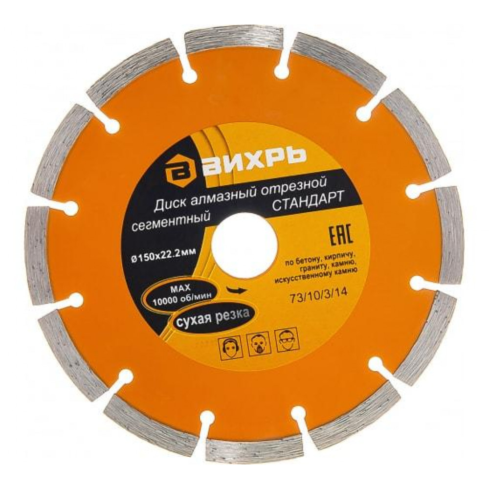 Диск алмазный отрезной сегментный СТАНДАРТ 150х22.2мм сухая резка 73/10/3/14