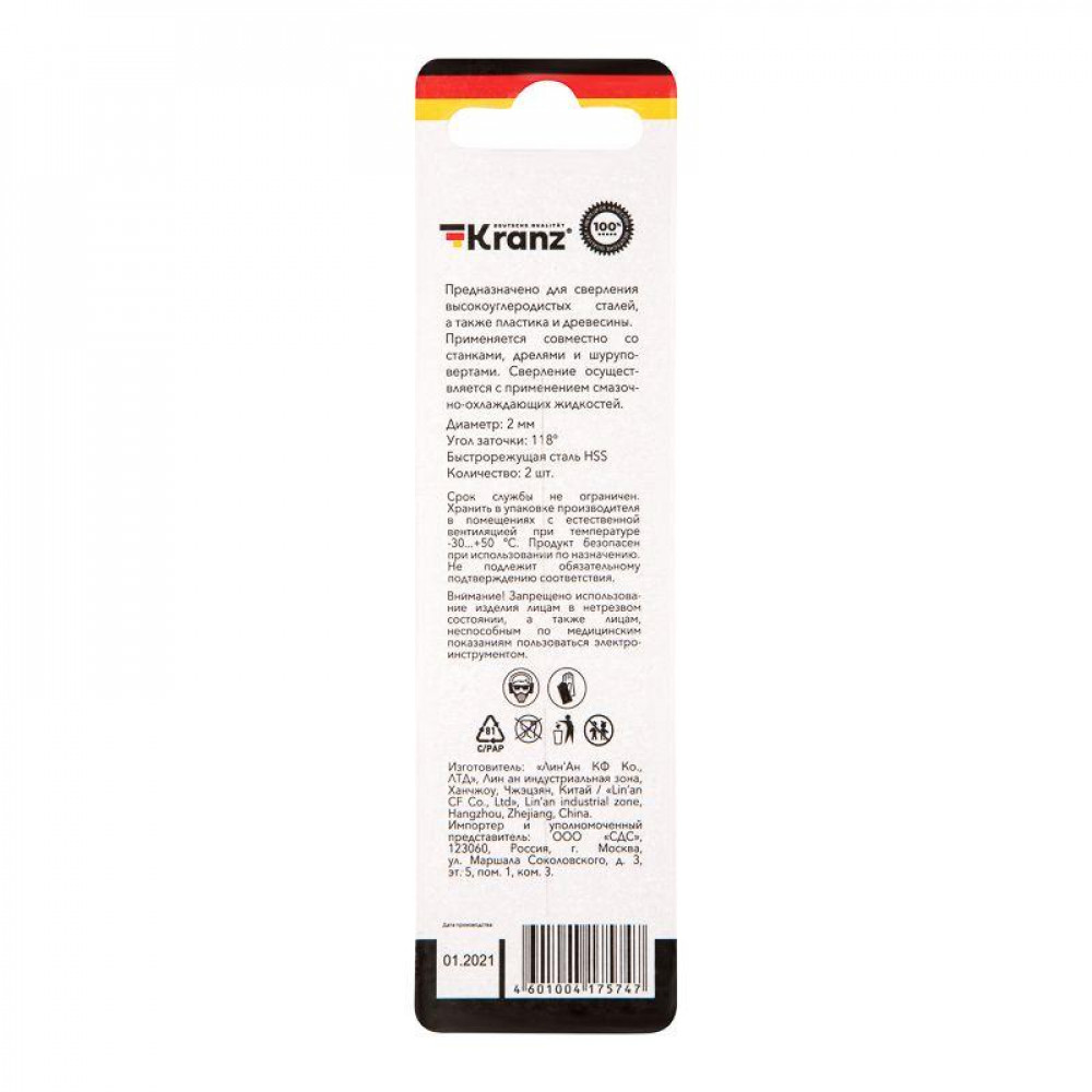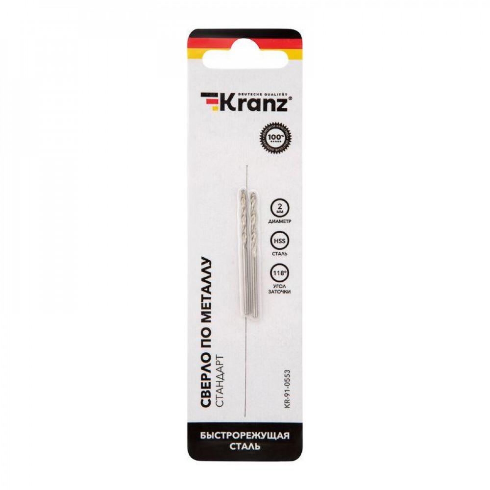 Сверло по металлу 2мм HSS DIN 338 (уп.2шт) KR-91-0553, Сверло, метчик, плашка