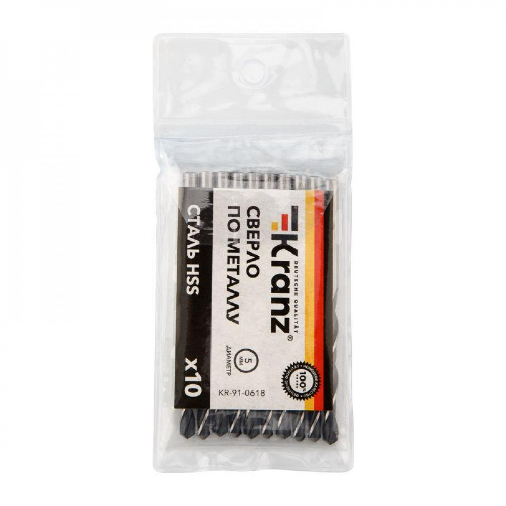 Сверло по металлу 5,0х86х52 мм HSS (10 шт. в упаковке) DIN 338 KR-91-0618, Сверло, метчик, плашка