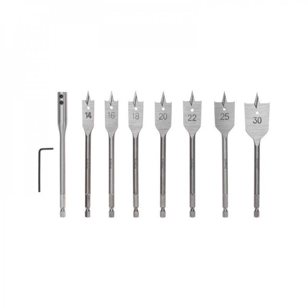 Доставка Набор сверл перовых по дереву 9 предметов: 14-16-18-20-22-25-30х152 мм, удлинитель, ключ угловой KR-91-0762
