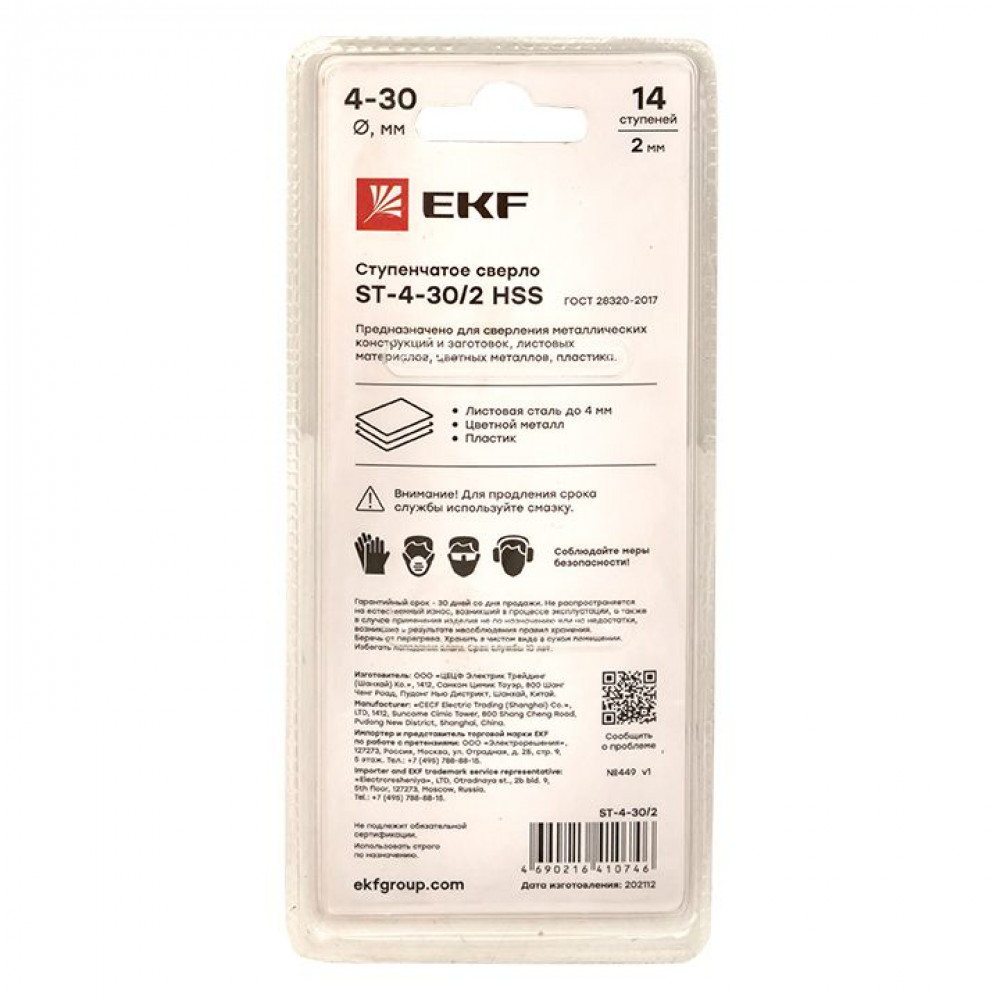 Описание Сверло ступенчатое HSS 14 ступ. ST-4-30/2 ST-4-30/2
