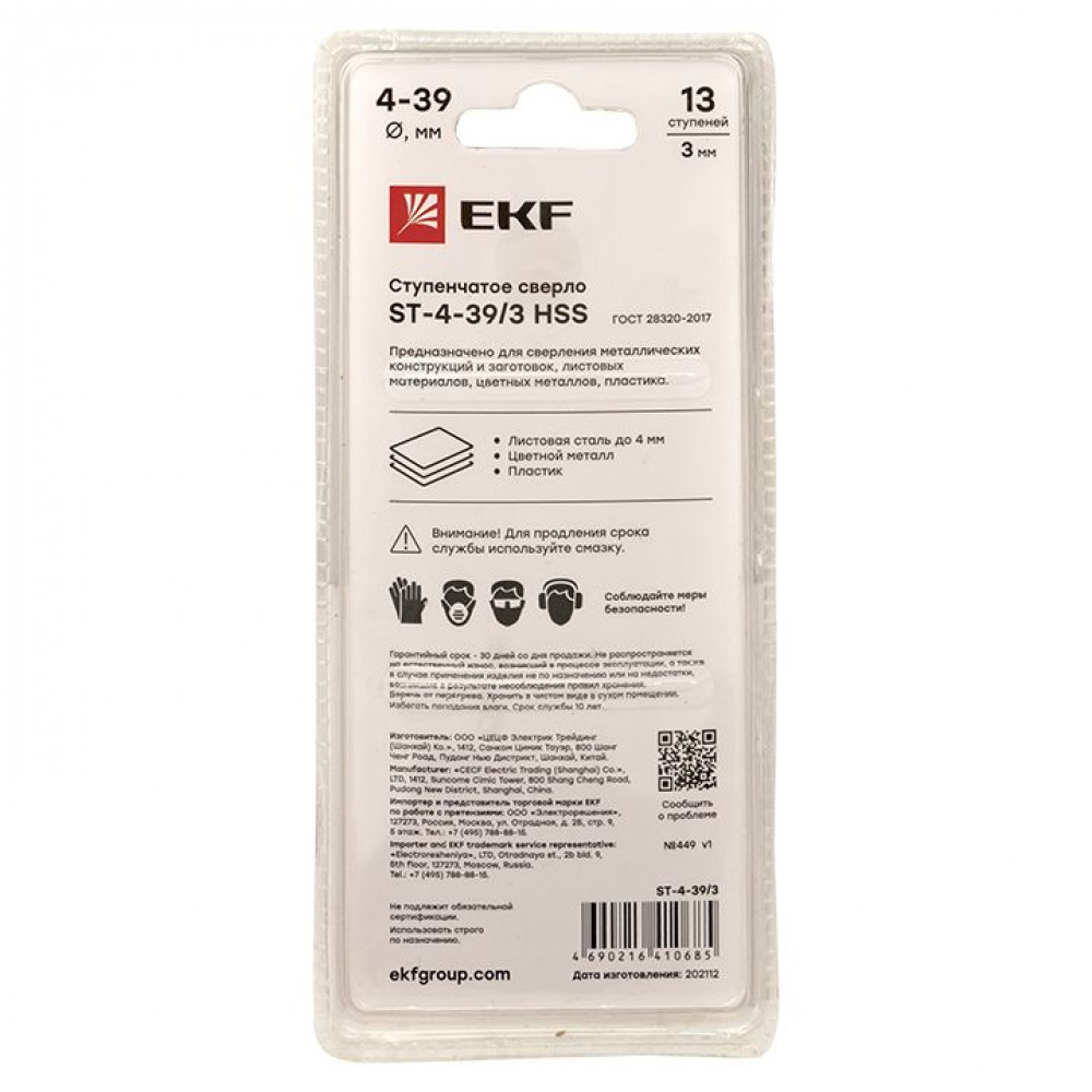 Описание Сверло ступенчатое HSS 13 ступ. ST-4-39/3 ST-4-39/3