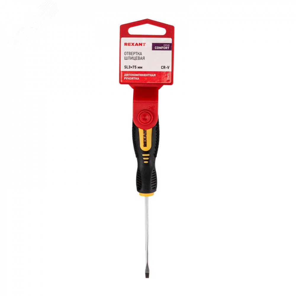Отвёртка SL 3 X 75 мм REXANT предназначена для монтажа/ демонтажа крепежных соединений.