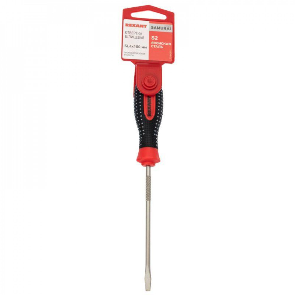 Описание Отвертка шлицевая SL4х100мм, трехкомпонентная рукоятка, сталь S2 12-6424-1