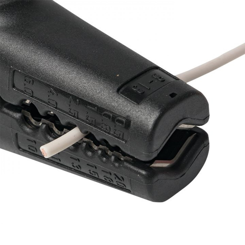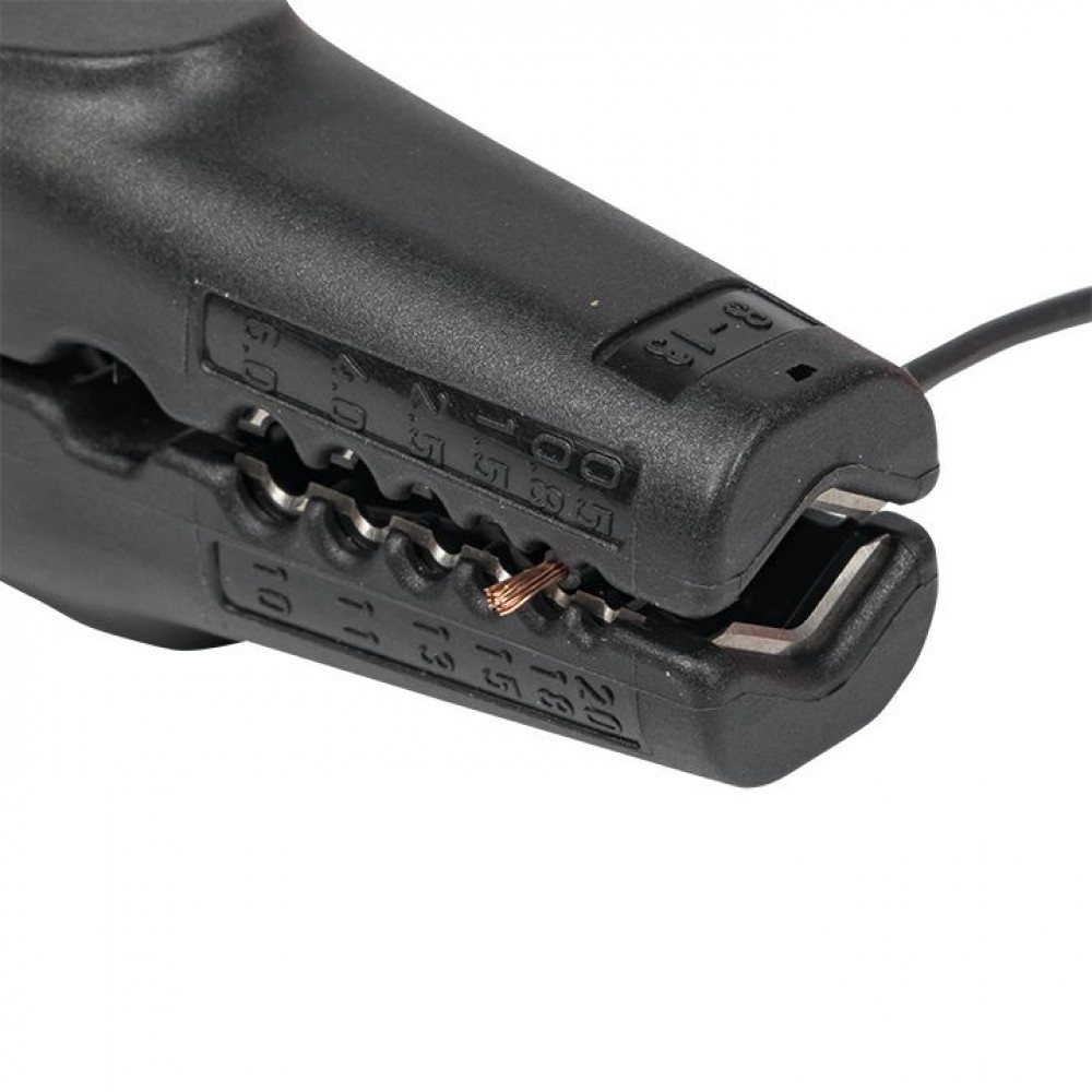 (со сплошными жилами - до 4 мм²). Встроенная шкала измерения длины позволяет снимать изоляцию с проводов сечением от 8 до 20 мм, а сменные встроенные лезвия ‒ работать с ПВХ-изоляцией проводов.