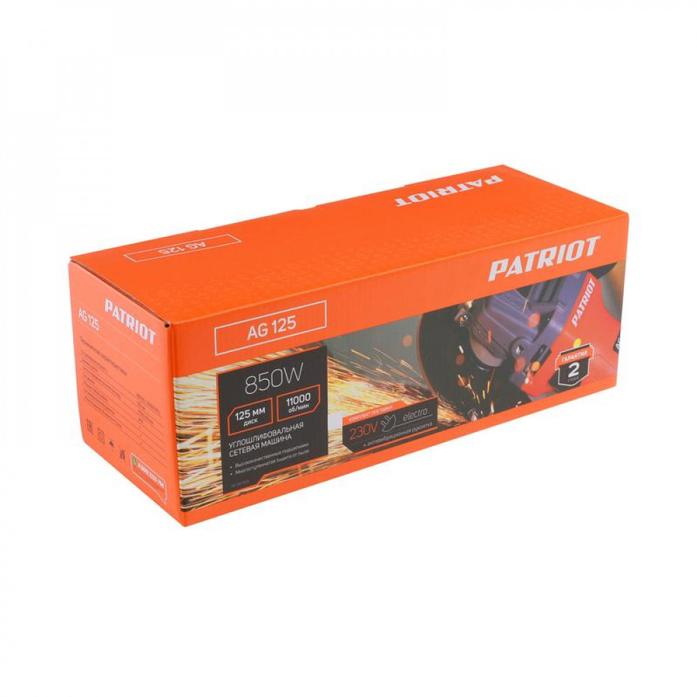 Описание Машина углошлифовальная (УШМ) AG 125 тонкий корпус пылезащищенная 850Вт Диск 125мм 110301125