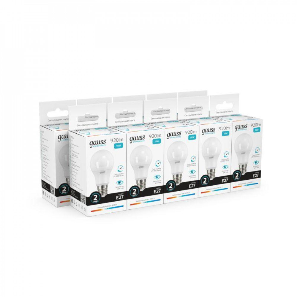 Лампа светодиодная LED Elementary Globe A60 10Вт E27 4100К Gauss 23220 – лампа с колбой вида "шар", желтого света, длиной 125 мм, диаметром 60 мм, с цоколем Е27, мощностью 10 Вт. Цветовая температура 4100 К.
