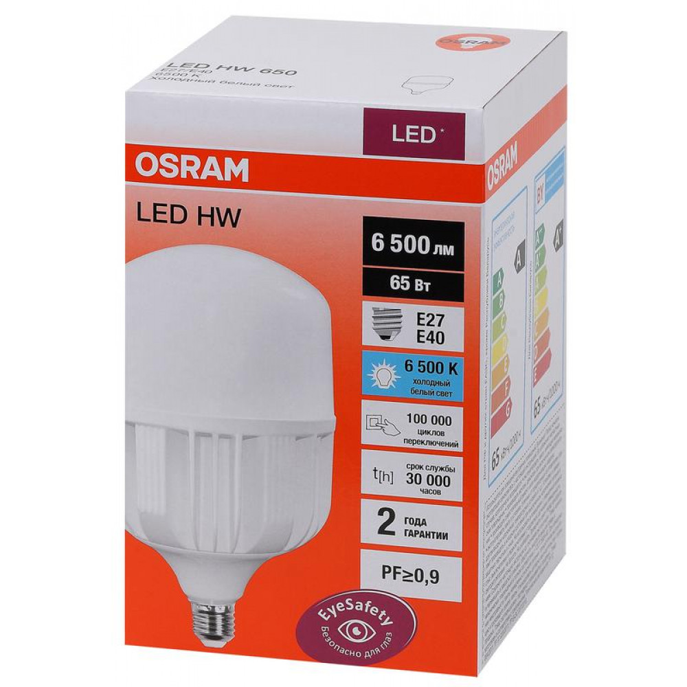 ← Лампа светодиодная высокомощная LED HW 65Вт T матовая 4000К нейтр. бел. E27 6500лм 140-265В с адаптером E40 угол пучка 200град. PF>/=09 (замена 650Вт) OSRAM 4058075576896