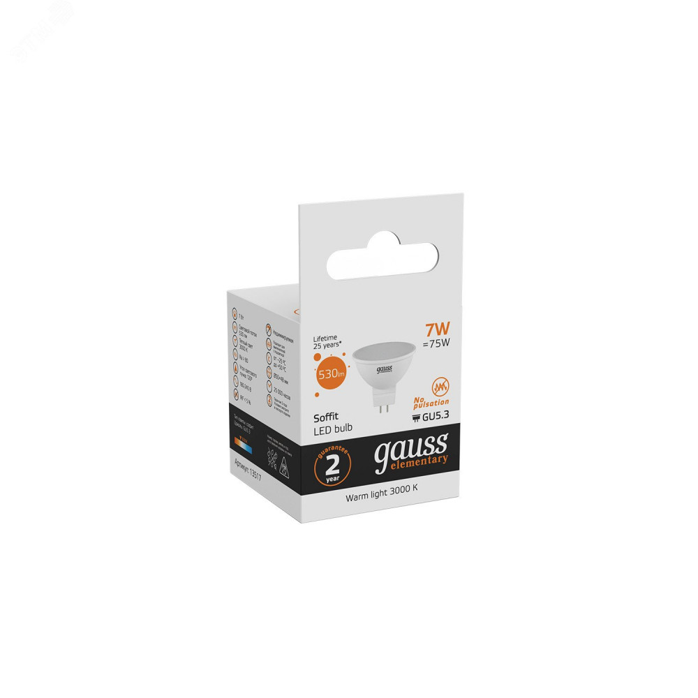 Описание Лампа светодиодная Elementary 7Вт MR16 софит 3000К тепл. бел. GU5.3 530лм 13517