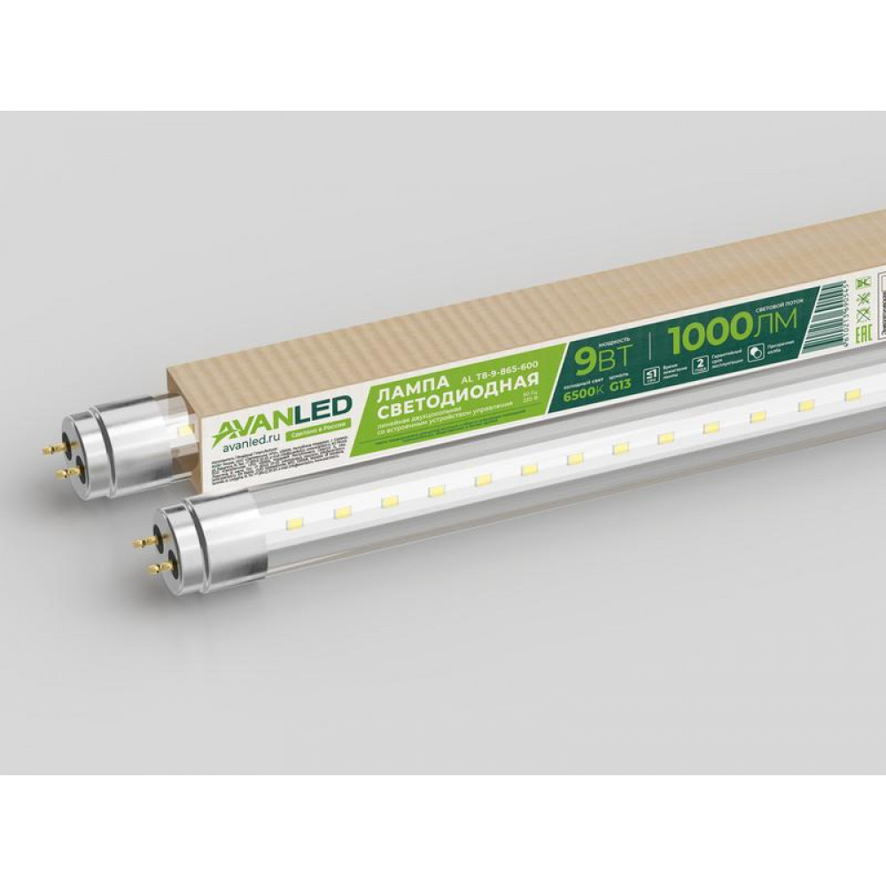 Описание Лампа светодиодная AL T8-9-865-600 9Вт прозрачная 6500К холод. бел. G13 1000лм 195-265В (пр-во РФ) 11206651