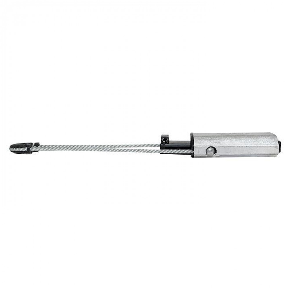Зажим анкерный клиновой обеспечивает фиксацию проводника путем срабатывания простого призматического механизма, рабочие поверхности которого сходятся под острым углом. На опоре ЛЭП зажим фиксируется с помощью тросика.