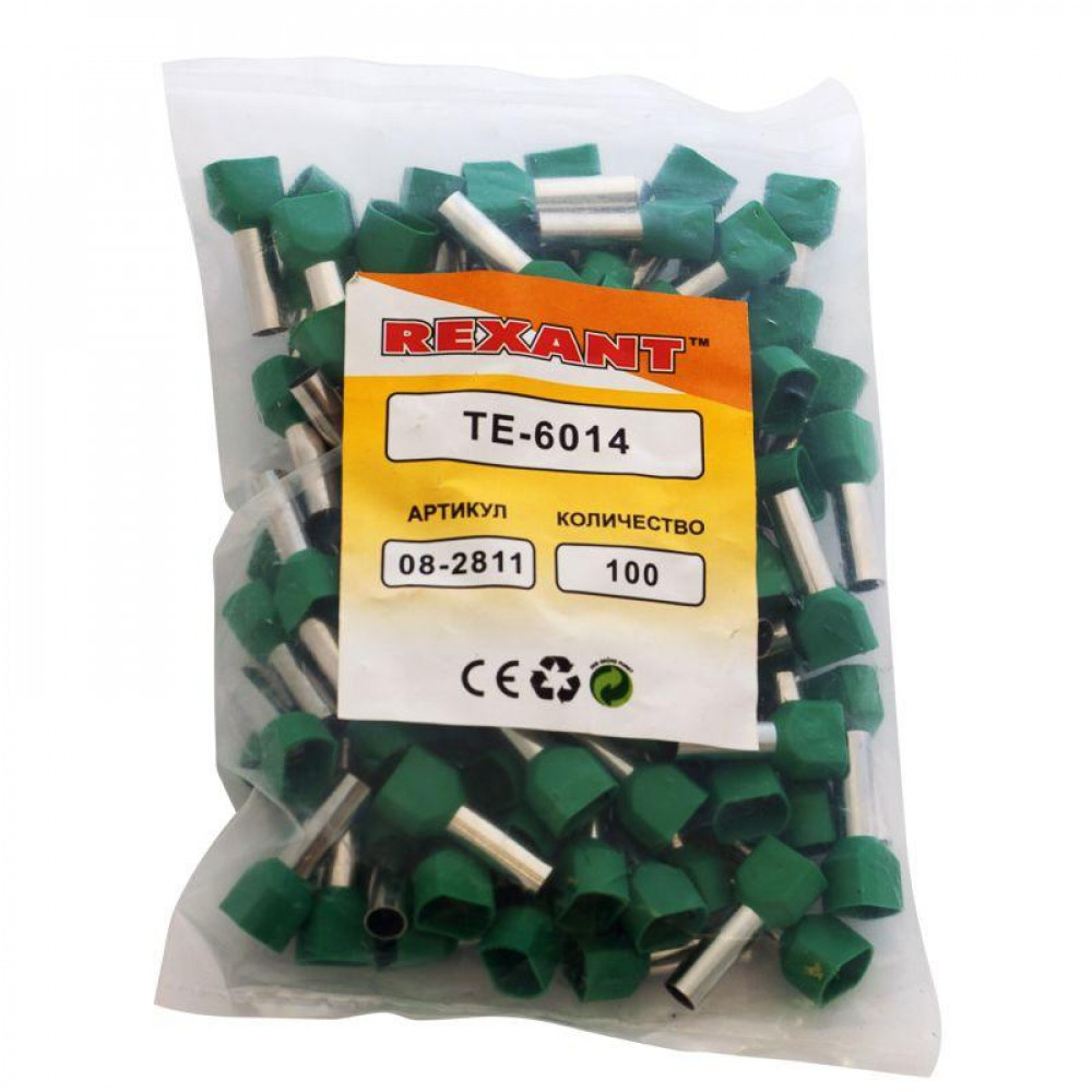 Наконечник штыревой втулочный изолир. (НШВИ F-14мм) 2х6кв.мм (TE-6014) зел. 08-2811, Наконечник, гильза