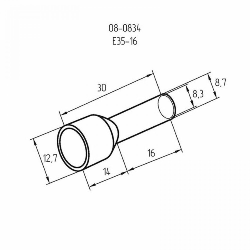 Описание Наконечник штыревой втулочный изолир. (НШВИ F-16мм) 35кв.мм (СЕ350016red) красн. 08-0834