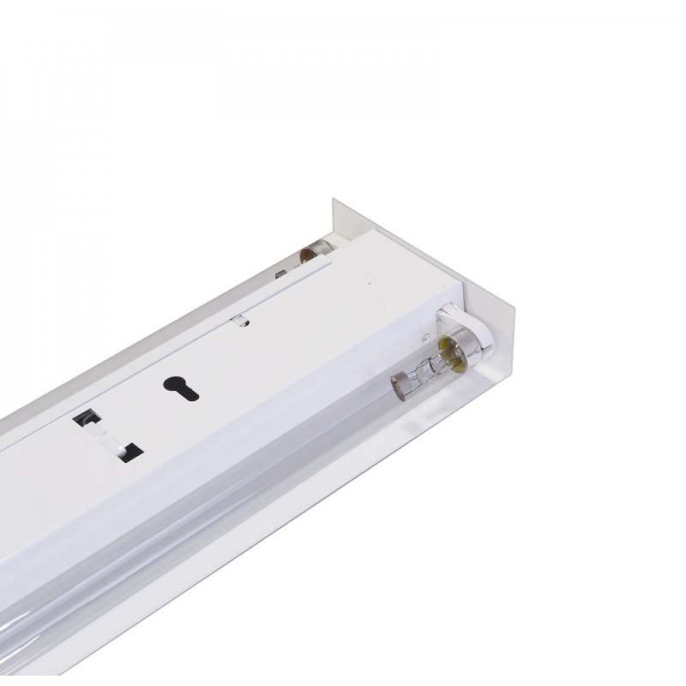 Защитный экран и корпус светильника сделаны из стали, окрашенной белой порошковой краской. В качестве источника света используются бактерицидные ртутные лампы низкого давления (в комплект поставки лампы не входят).