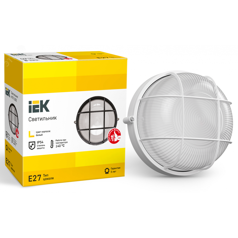 Описание Светильник НПП 1302 60Вт E27 IP54 бел. круг с решеткой LNPP0-1302-1-060-K01