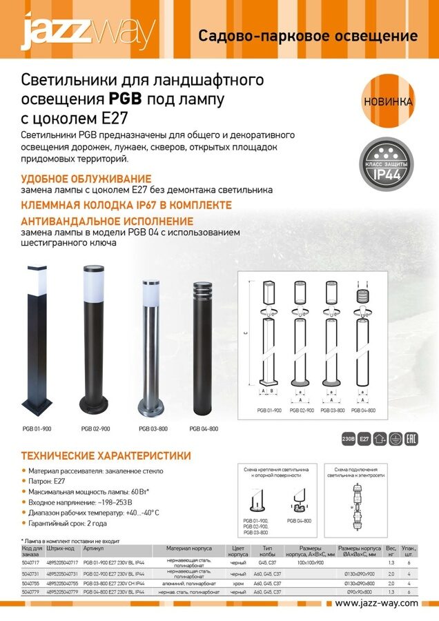 Описание Светильник для ландшафтного освещения PGB 03-800 E27 230В CH IP44 5040755