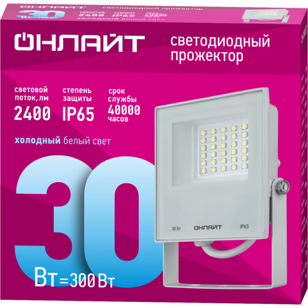 Прожектор светодиодный 90 135 OFL-30-6K-WH-IP65-LED 30Вт 6000К IP65 2400лм бел. 90135, Прожектор