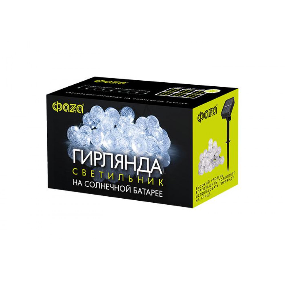 Описание Светильник светодиодный садовый SLR-G05-30W гирлянда шарики холод. бел. на солнечн. батарее 5033351