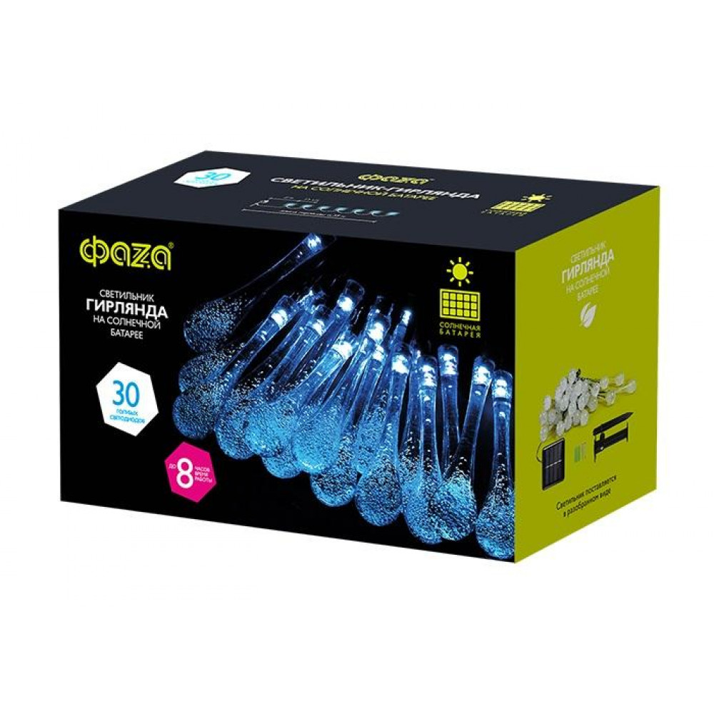 Светильник светодиодный SLR-G08-30B садовый; гирлянда капли син. солнечная батарея 5040946