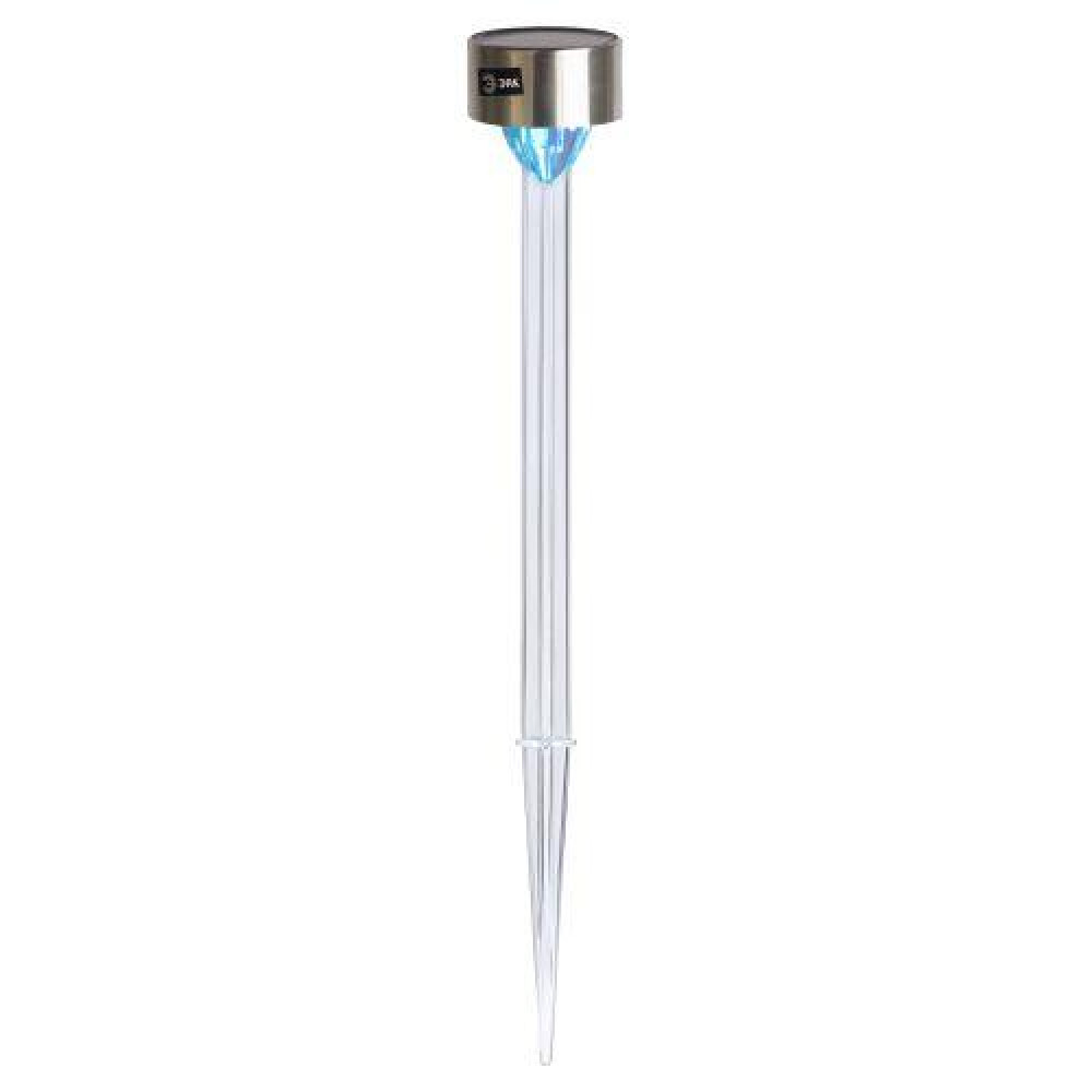 В светильнике уличномна солнечной батарее ЭРА ERASF22-47"Радуга" (арт.Б0057653) установлен RGB-светодиод, подсвечивающий разными оттенками прозрачную ножку. Это грунтовый садовый светильник, который быстро и легко устанавливается в землю, гравий, газон. Встроенная солнечная батарея аккумулирует энергию естественного света в дневное время, превращая её в эффектную мультиколор-подсветку ночью. Светодиод автоматически начинает светить и менять цвета с наступлением вечера. Садовые светильники ЭРА "Радуга" особо удачны для оформления дорожек ивходных групп, будут красиво смотреться у беседок, веранд, бань и любых загородных построек. Хорошее решение для сегмента horeca - помогут оформить территорию летних кафе, домов отдыха, гостиниц, отелей. Радужное свечение создаёт праздничное настроение и волшебную атмосферу за городом.