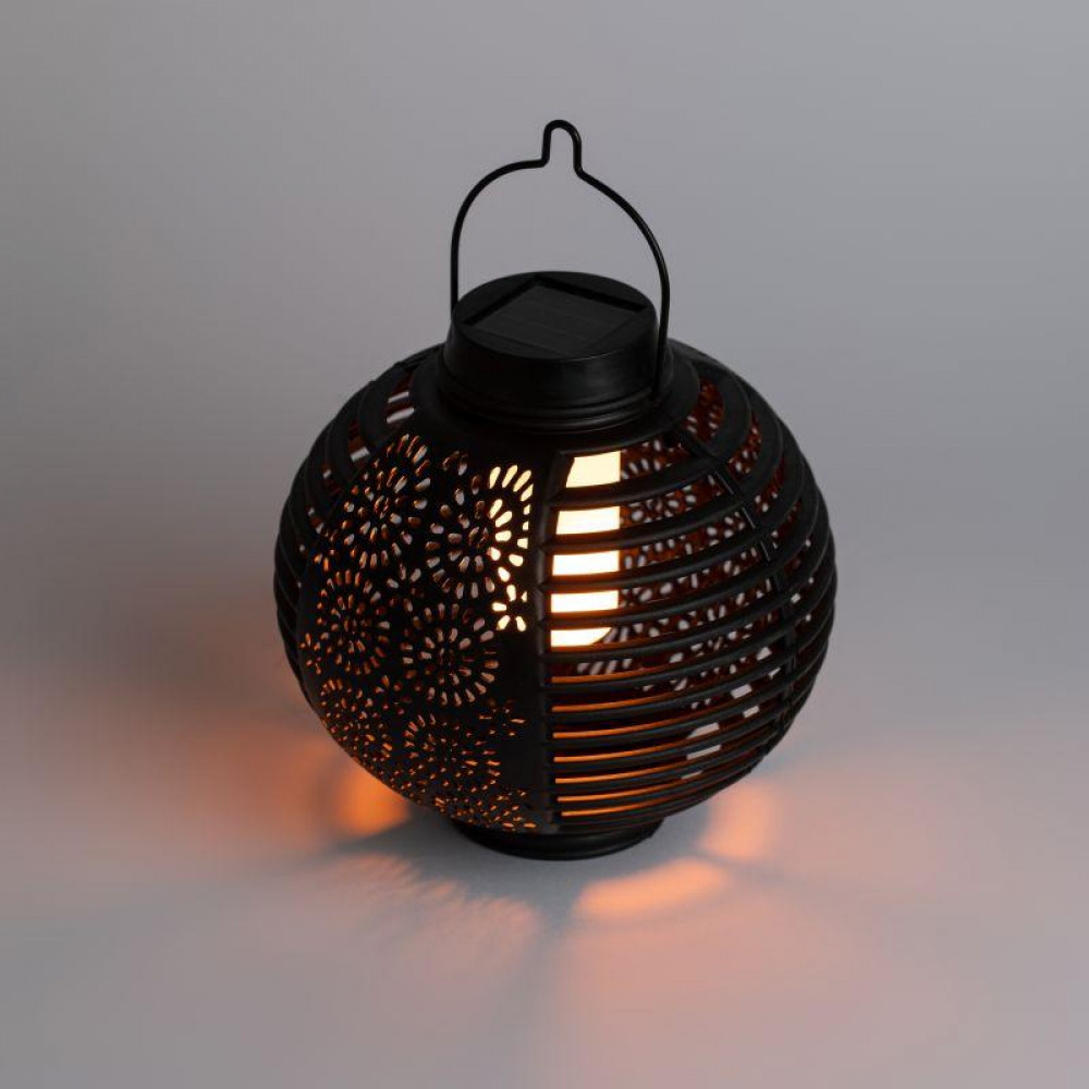 Подвесной круглый фонарь садовыйЭРА ERASF22-49 (арт.Б0057661) с узорчатой перфорацией для красивого светового рисунка и динамичным тёплым светом, имтирующим свет живого огня. Лёгкий и прочный уличный фонарь с ручкой для подвеса и удобного переноса поставляется в комплекте с эффектным изогнутым держателем. Стойка легко устанавливается в грунт за счёт заострённого колышка.Внутри круглого перфорированного плафона -яркий светодиод тёплой цветовой температуры. Встроенная солнечная батарея позволяет размещать светильник-фонарь в любом месте загородной территории. Солнечная энергия - экономичный и экологичный источник энергии. После подзарядки от дневного света, данный подвесной уличный светильник самостоятельно включится, как только наступят сумерки.