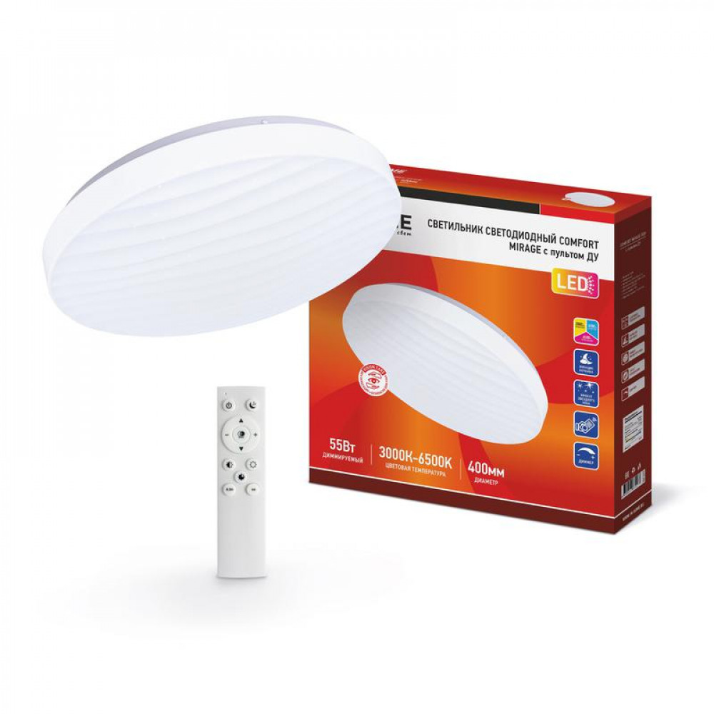 Описание Светильник светодиодный COMFORT MIRAGE 55Вт 230В 3000-6500К 4400лм 400х70мм с пультом ДУ 4690612034577