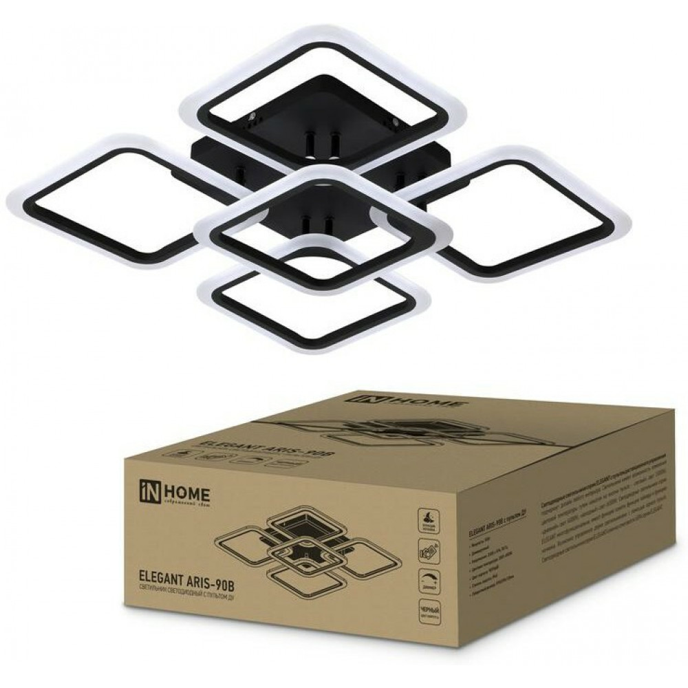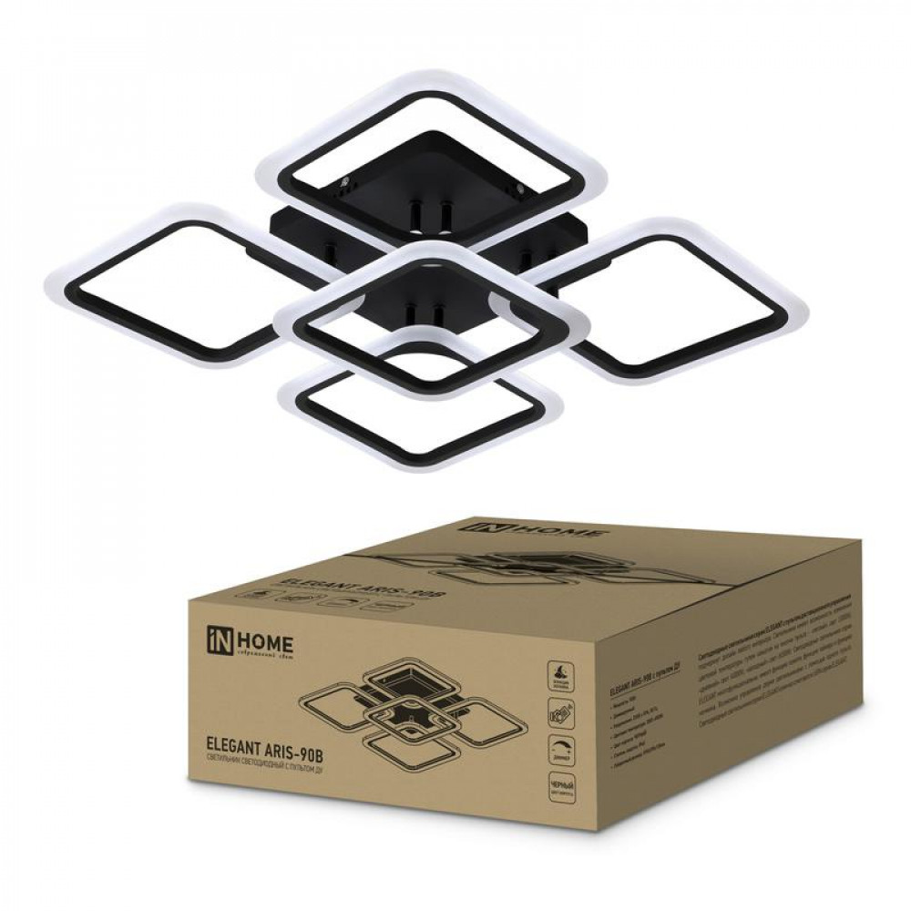 Впечатляющая геометрия форм потолочного светодиодного светильника ELEGANT ARIS от ТМ INhome удачно сочетается с новейшими LED-технологиями. Пульт управления обеспечивает возможность дистанционной настройки освещения (от уютного теплого до холодного белого света), а также отвечает за работу дополнительных функций, которые предусмотрены конструкцией:
