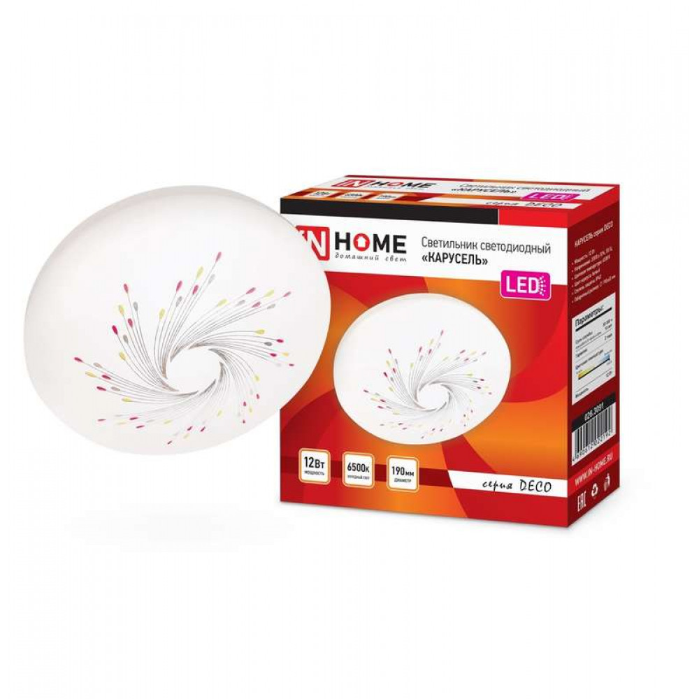 Светодиодные светильники КАРУСЕЛЬ серии DECO от ТМ In Home в классическом белом матовом корпусе с яркими цветовыми акцентами добавят нотку жизнерадостности в интерьер любого помещения. Линейка светильников КАРУСЕЛЬ представлена в трех размерах от 190 до 350 мм. Несколько вариаций мощности (в диапазоне от 12 Вт до 36 Вт) позволяют подобрать оптимальный осветительный прибор, в зависимости от конфигурации и габаритов помещения. Применение Светодиодные светильники КАРУСЕЛЬ серии DECO предназначены для внутреннего освещения жилых помещений, подъездов и сферы ЖКХ, офисных и административных учреждений, магазинов, а также холлов, коридоров, лестничных пролётов, подсобок и других помещений вспомогательного назначения. Преимущества Современные светильники серии DECO, работающие на основе последнего поколения светодиодов, обеспечивают яркий равномерный световой поток при максимальной экономии электроэнергии. Отсутствие пульсации гарантирует сохранность здоровья глаз. Светодиодные светильники являются одним из самых экологически безвредных источников света и не требуют специально?