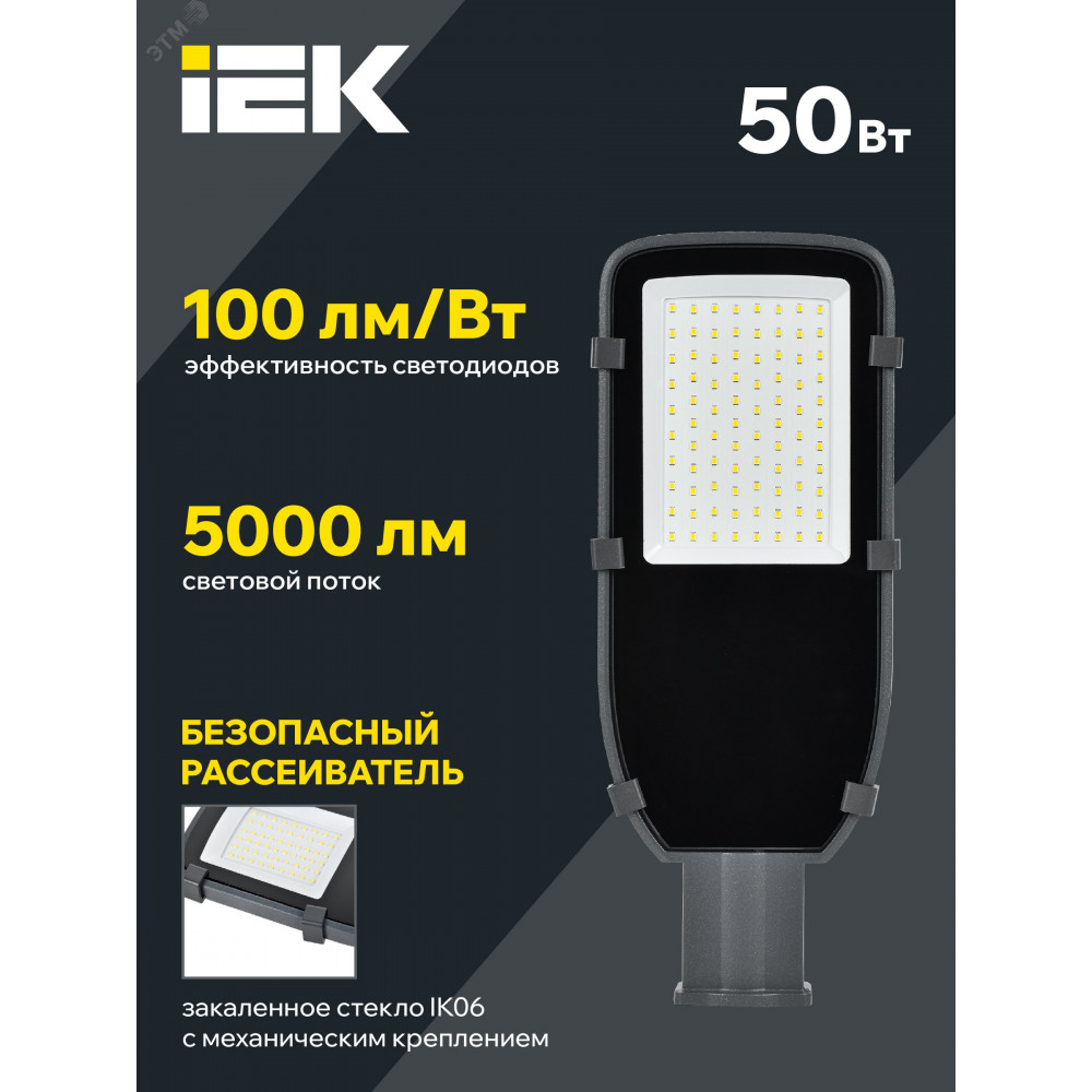 Описание Светильник светодиодный ДКУ 1002-50Д 5000К IP65 сер. IEK LDKU0-1002-050-5000-K03