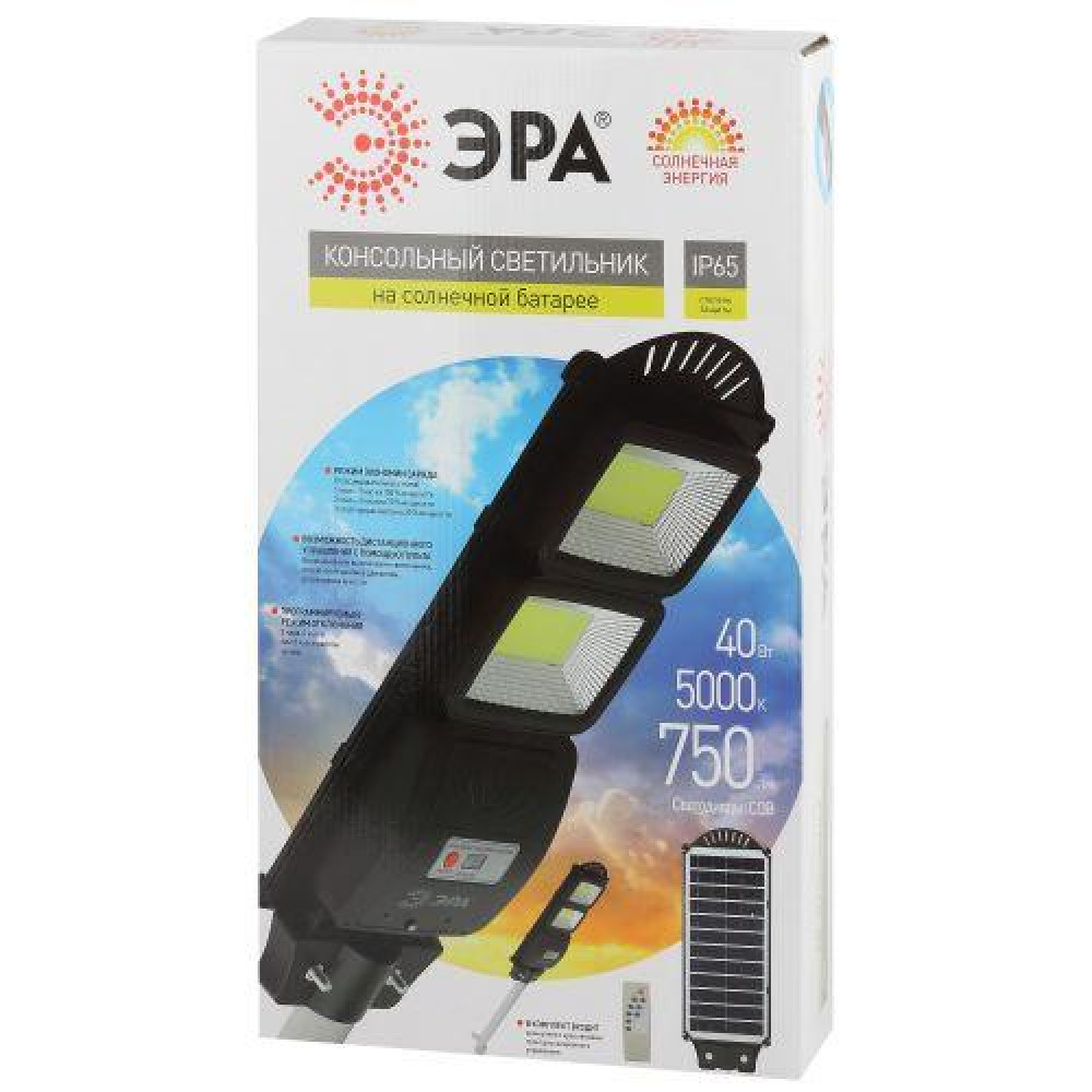 Светильник консольный 40Вт 750лм 5000К IP66 на солнечной батарее COB с кронштейном с датчиком движения ПДУ Б0046794