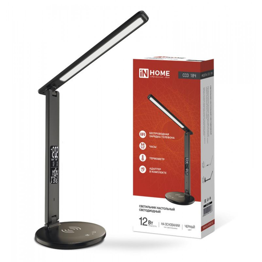 Основное назначение настольного светодиодного светильника ССО 18 от ТМ In Home – дополнительное освещение рабочего стола. Модель подходит как для дома, так и для офиса. Удобное сенсорное управление позволяет регулировать уровень яркости светового потока (три режима мощности) и уровень цветовой температуры. Светильник оснащен дополнительными функциями - часы, термометр и беспроводная зарядка мобильного телефона. Питание светильников ССО-18 осуществляется от бытовой электросети 230В. Адаптер входит в комплект. Светодиодные светильники In Home гарантируют высокую экономичность, экологическую безопасность и комфорт для зрения.