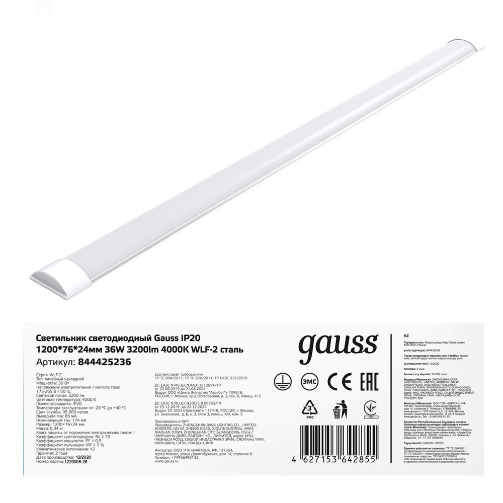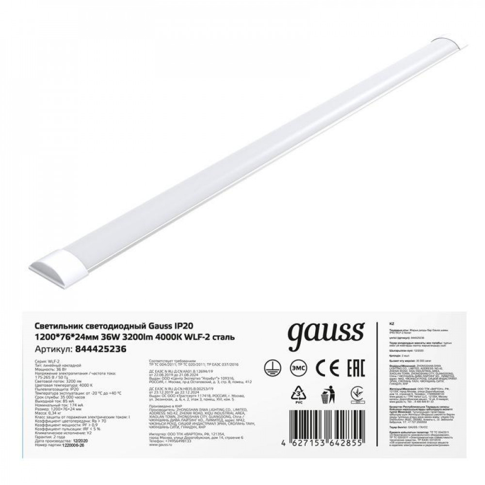 Описание СВ-К СВЕТОДИОДНЫЙ IP20 1195*74*24ММ 36W 2250LM 4000K CTAЛЬ 1/20 844425236