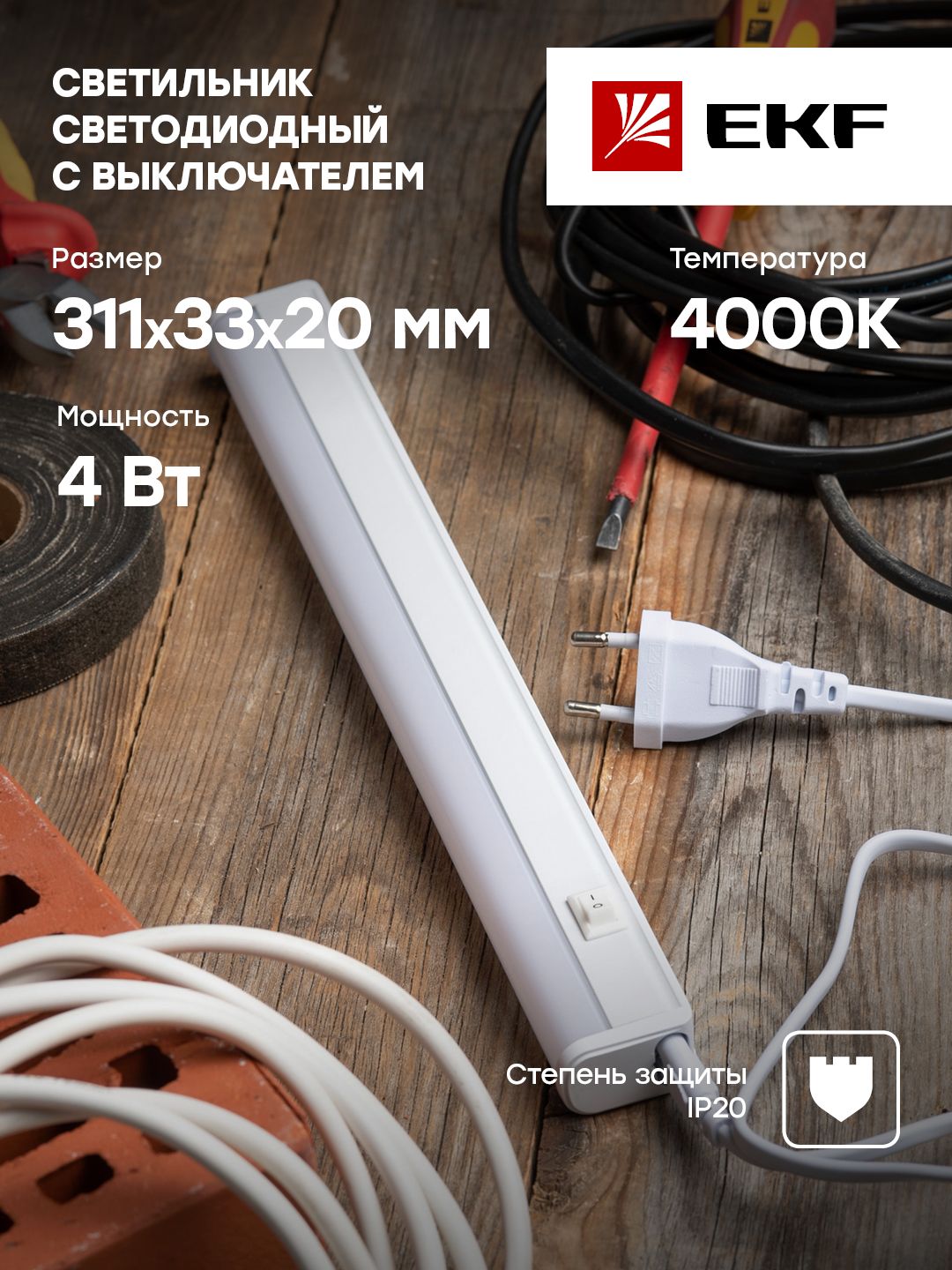 Описание Светильник светодиодный ДБОВ-7101 4Вт 4000К IP20 линейный с выключателем Basic LBS-7101-4-4000