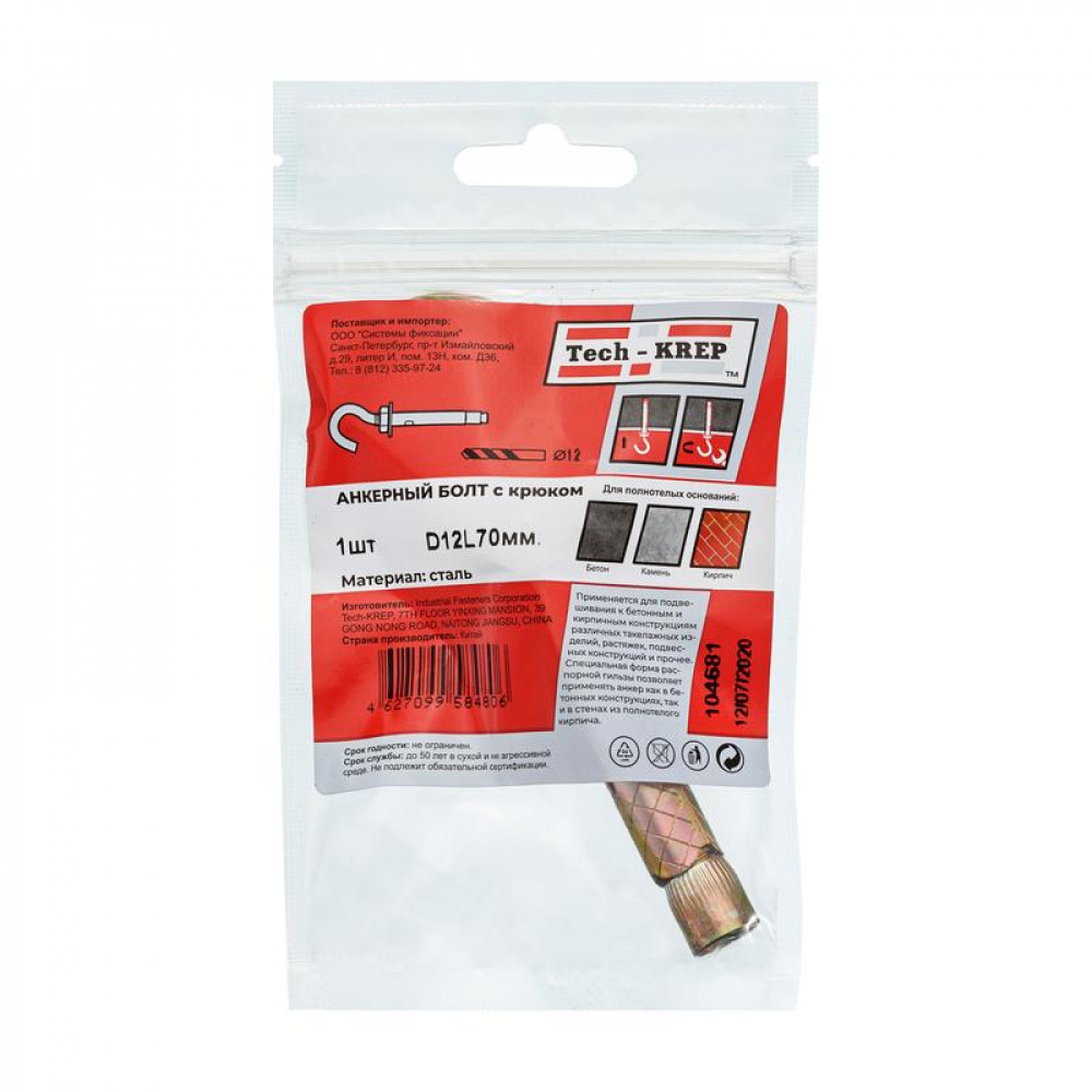 Доставка Болт анкерный с крюком 12х70 104681