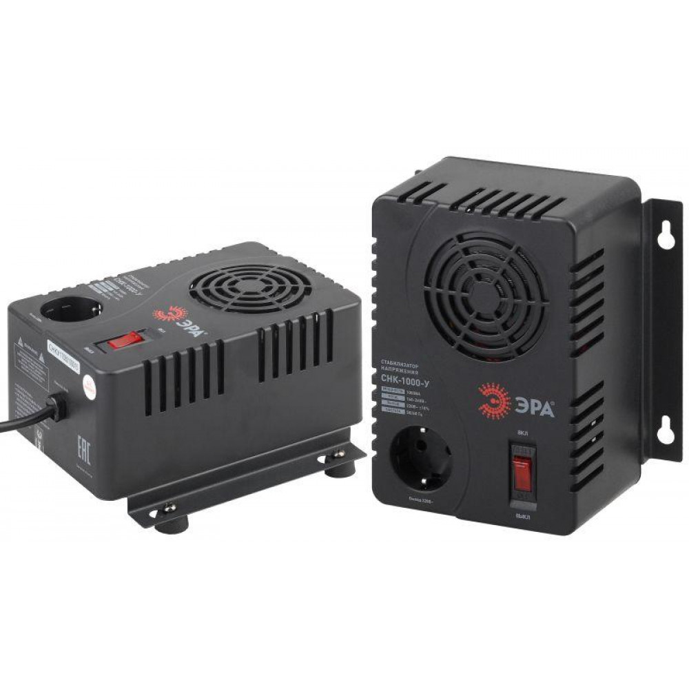 Стабилизатор напряжения компактный однофазный релейный цвет чёрный модели СНК-1000-У. Номинальные характеристики (полная мощность / диапазон входного напряжения): 1000ВА 160-260В . Предназначен для поддержания стабильного однофазного напряжения питания бытовых приборов при отклонениях значений сетевого напряжения. Выбирая стабилизатор, нужно знать, какое электрооборудование будет к нему подключено: один прибор, группу приборов (наиболее чувствительных к перепадам напряжения в сети) либо вся домашняя (офисная) техника. Затем необходимо рассчитать суммарную мощность защищаемых электропотребителей. Основное условие выбора мощности стабилизатора напряжения - суммарная мощность подключаемой к нему нагрузки не должна превышать полной мощности самого стабилизатора (в противном случае автоматика стабилизатора будет их просто отключать). Точные значения мощности можно узнать из паспортных данных Вашего конкретного потребителя. Стабилизатор подбирается с запасом в 25-30% к его полной мощности.