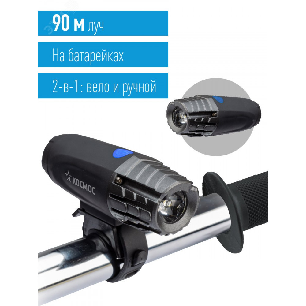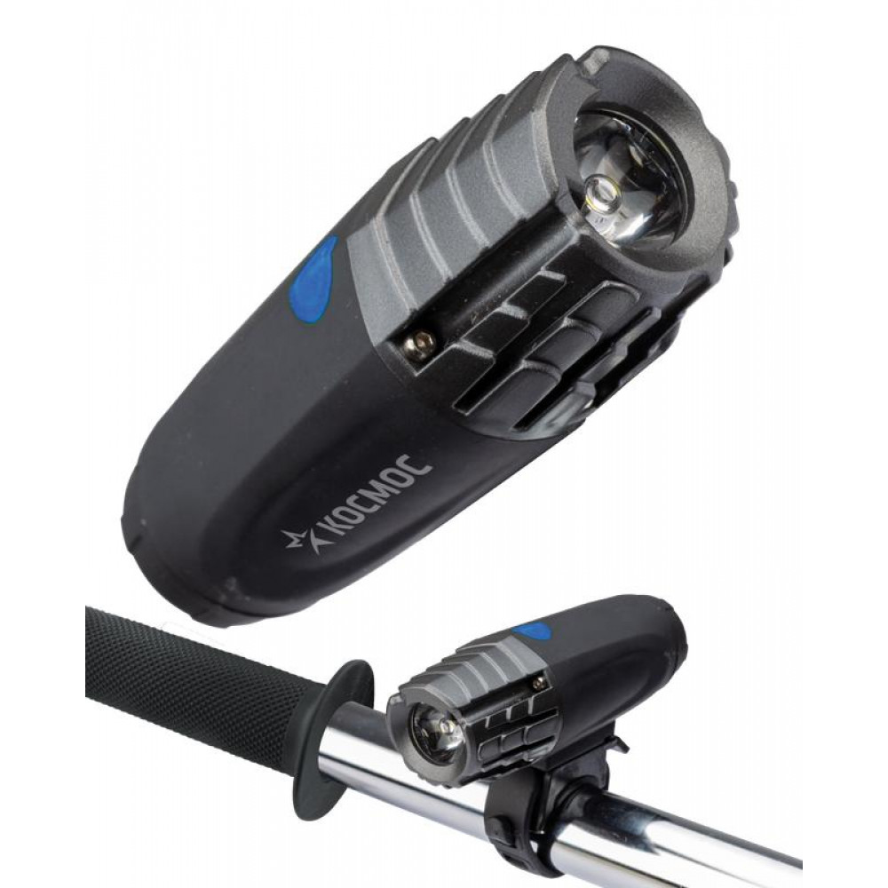 Фонарь велосипедный КОСМОС (KOC402B) – светит в любую погоду, защищен от дождя. Быстросъемное крепление отсоединяется в один клик, превращая фару в ручной фонарь. Луч фонаря – светит вперед, направленный свет. Три режима работы – яркий, средний и мигающий. Коллиматорная линза максимально эффективно фокусирует свет. Источник света - 1Вт LED (с коллиматорной линзой - позволяет создать поток света нужной направленности без снижения интенсивности). Источник питания - 3xAAА (в комплект не входят). Количество режимов - 3 (яркий-экономичный-мигающий). Световой поток - 90 лм. Дистанция освещения - 90 м. Корпус - ABS-пластик. IP54. Размер - 10.7x3.6x4.0 см. Регулируемый противоскользящий резиновый держатель-крепление.